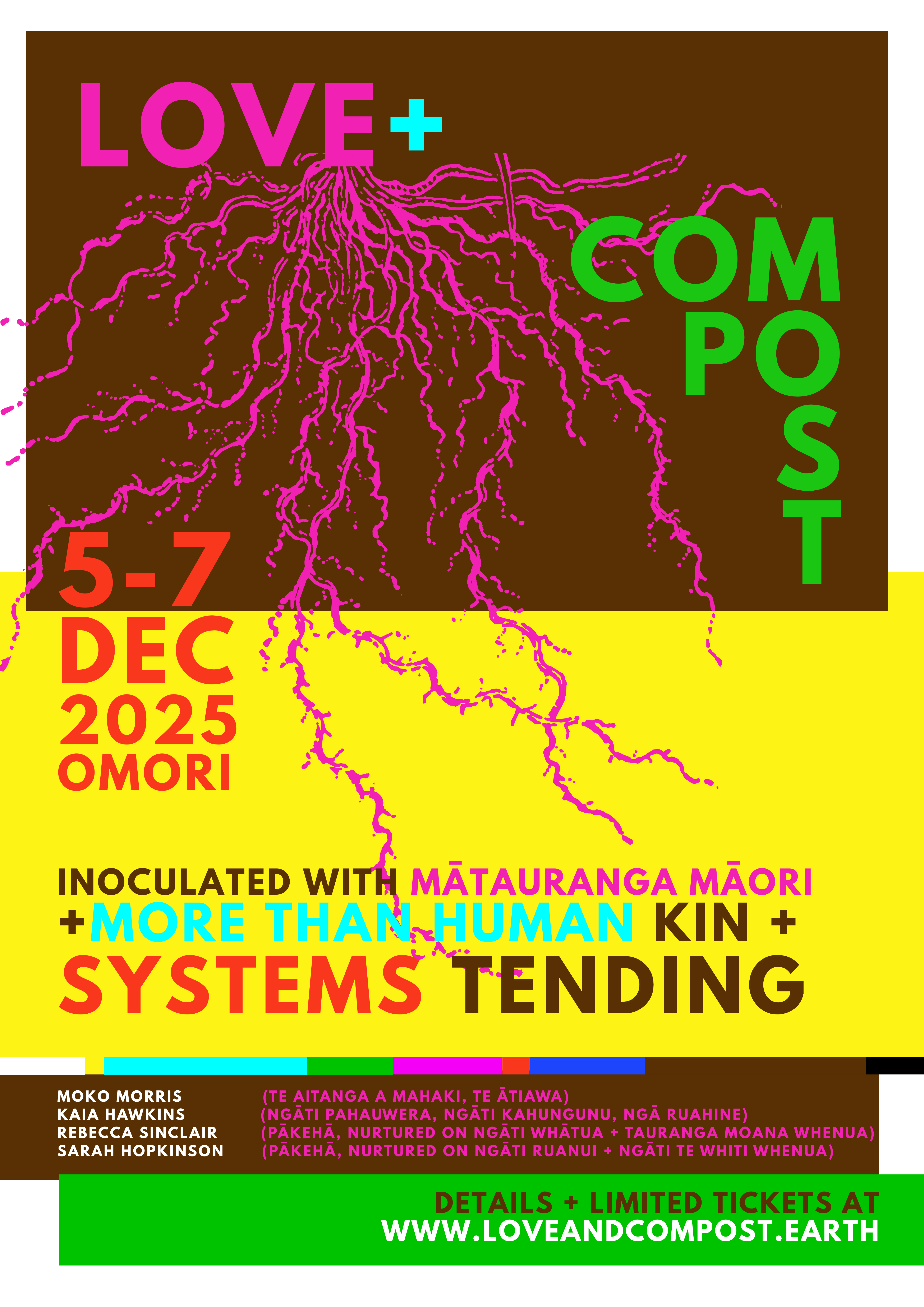 Love and Compost: life in decay is for those ready to compost the old and tend to what wants to emerge. Guided by mātauranga Māori, embodiment, the more than human world and deep systems, we invite you to feel your feet on the whenua, and your heart in the decay of this moment.